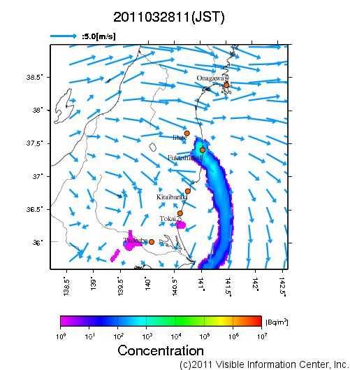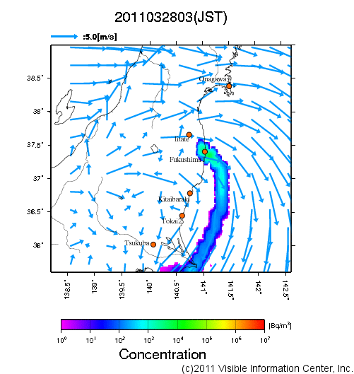 | 地表付近 大気中濃度分布[Bq/m3] |