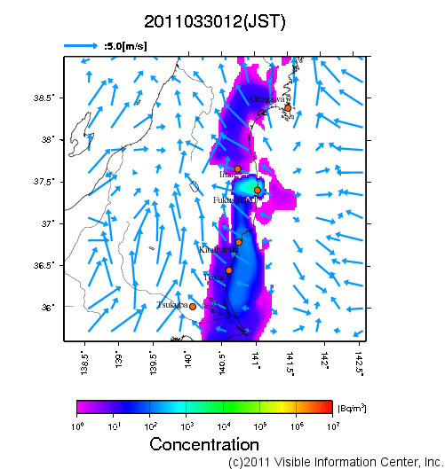 | 地表付近 大気中濃度分布[Bq/m3] |
