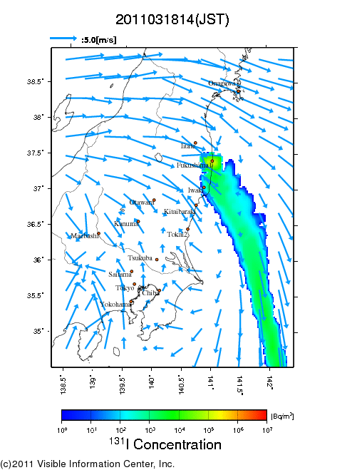 | 計算範囲 | 福島第一原子力発電所を含む600km四方 | |