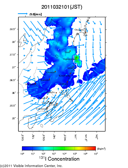 | 地表付近 大気中濃度分布[Bq/m3] |