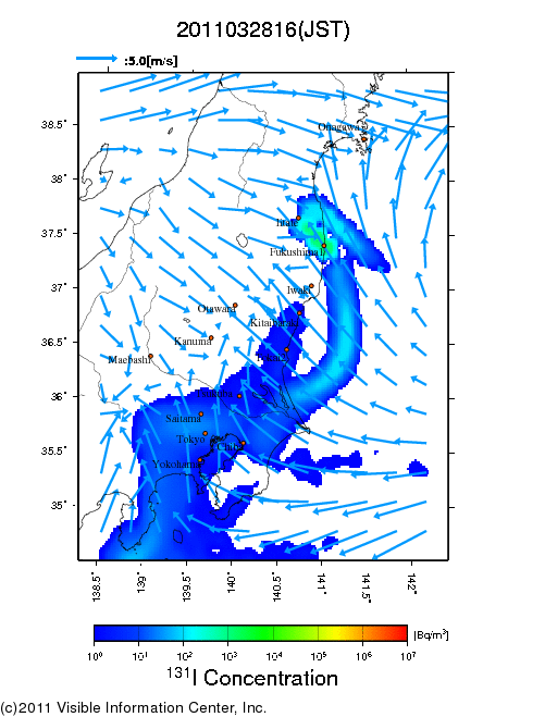 | 地表付近 大気中濃度分布[Bq/m3] |